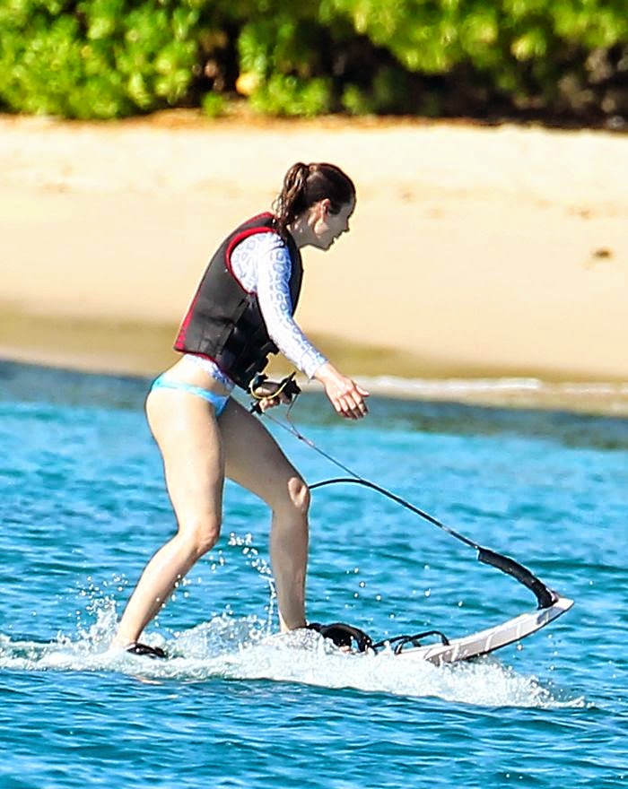 The‭ ‬32-year-old pushed the garment to the limit by playing a water ski on the Sandy Lane resort shores of the Caribbean on Friday, March 14, 2014.