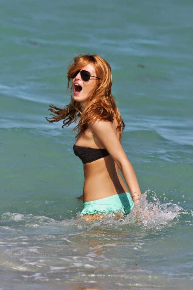 Bella Thorne lands her amazing in a turquoise bikini! Splash around the Miami beach